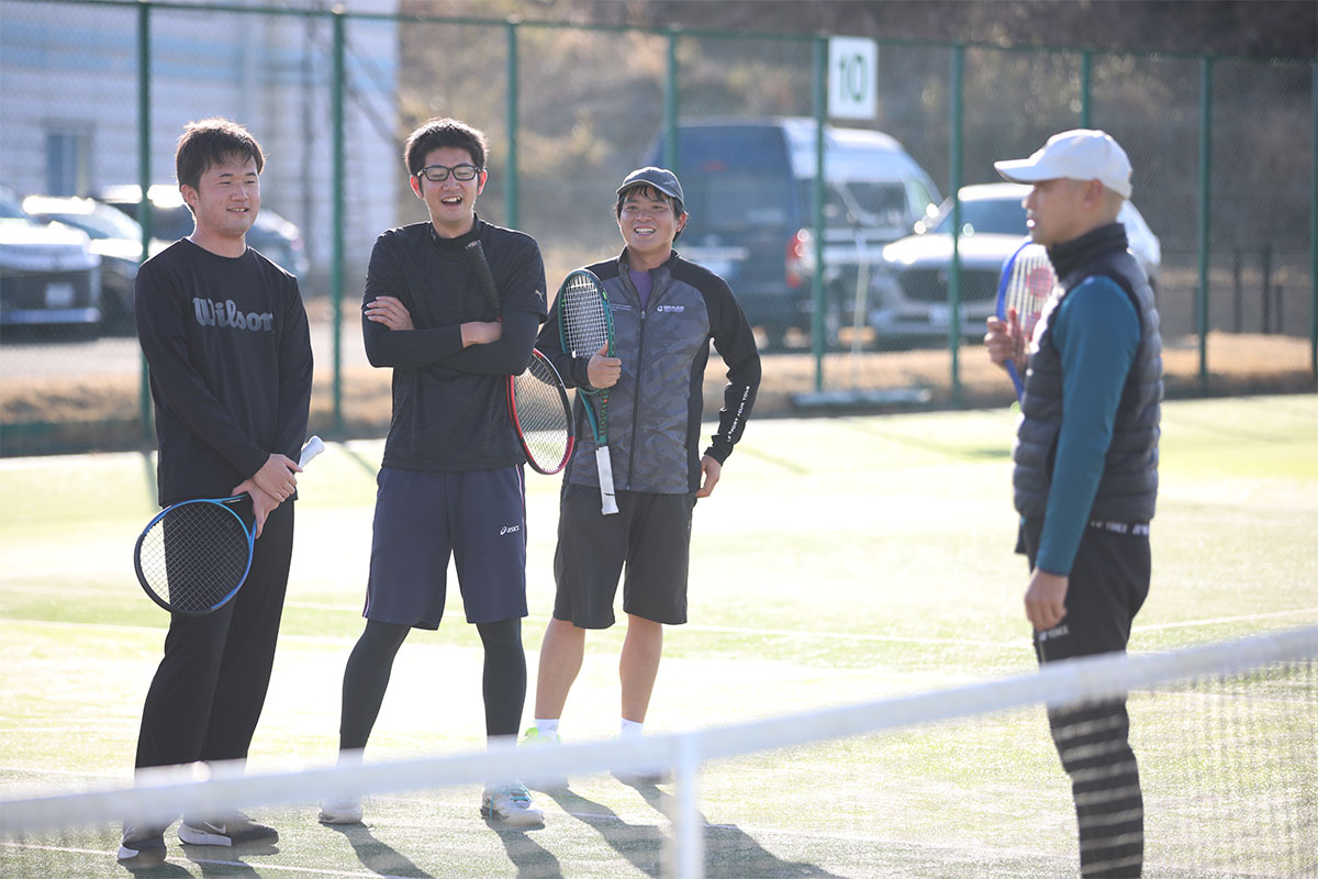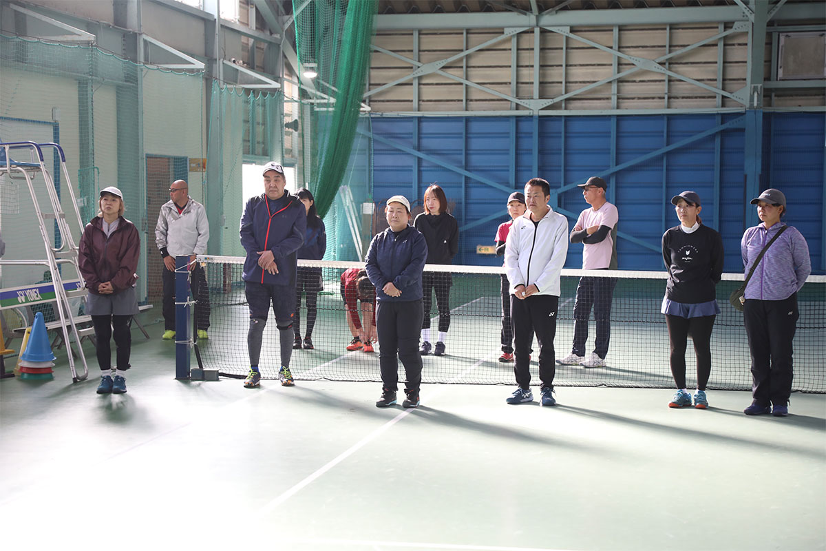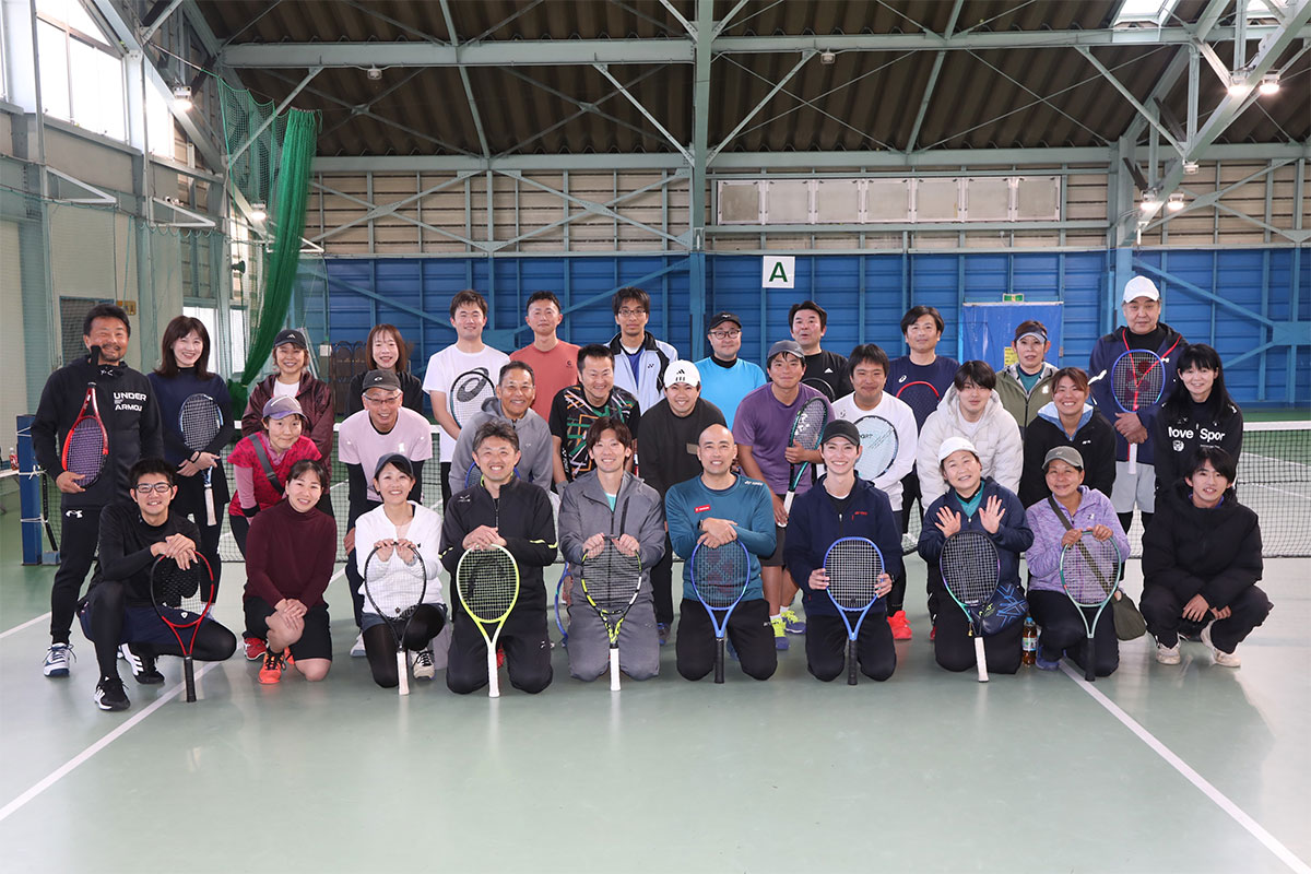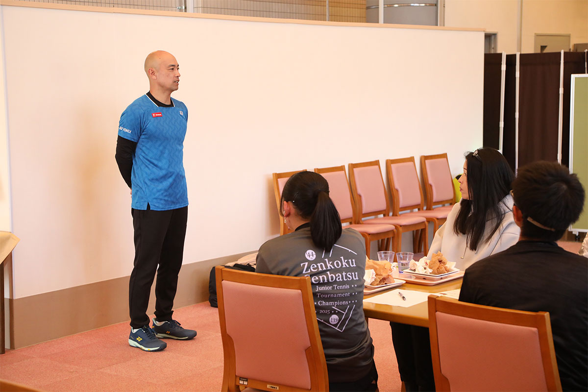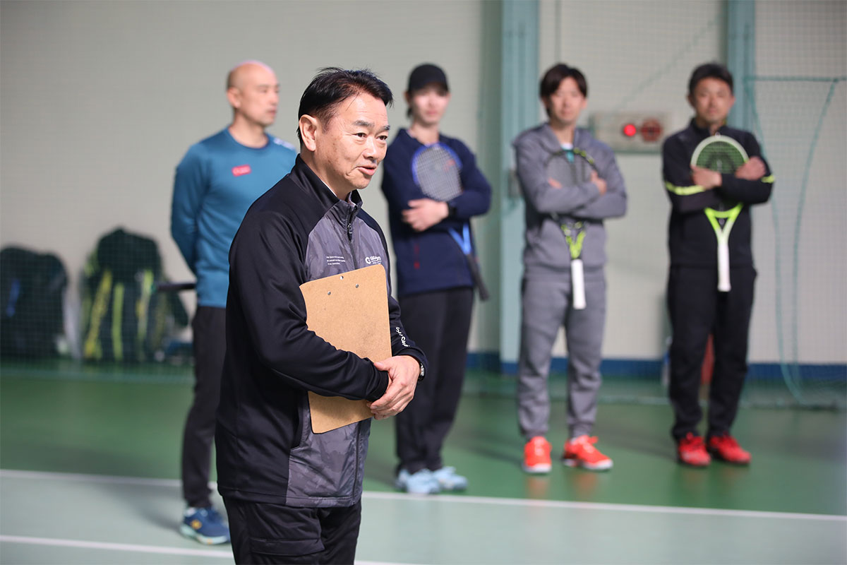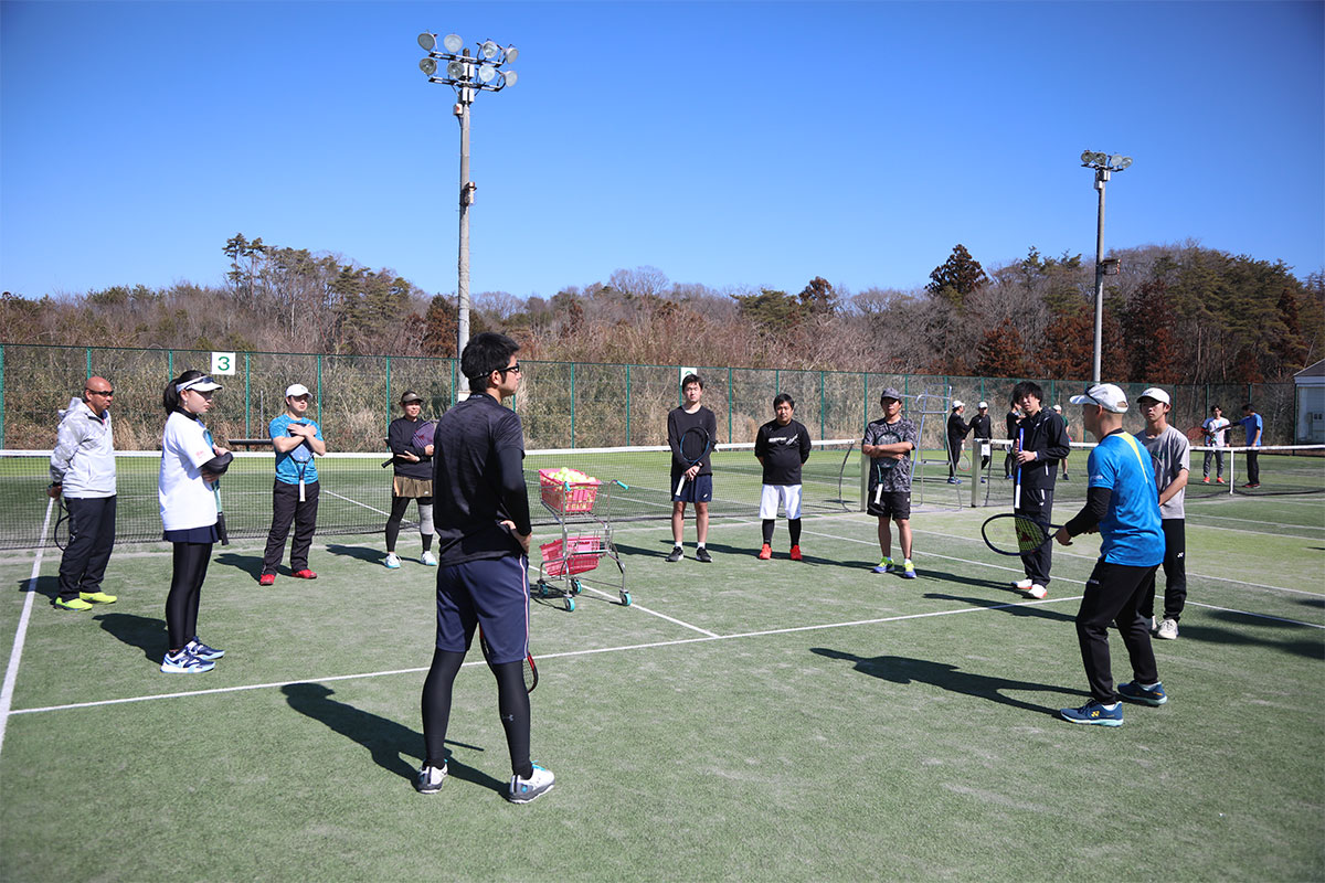 岩渕プロと交流をしながら、オンコートでのレッスンからビデオ映像を使用した座学講習までテニスのスキルアップに取り組みました。