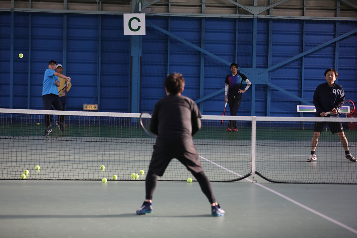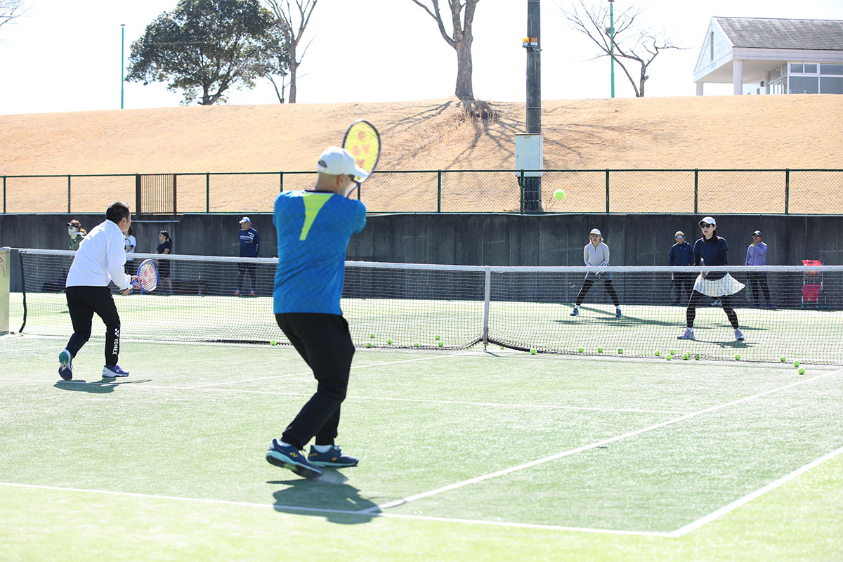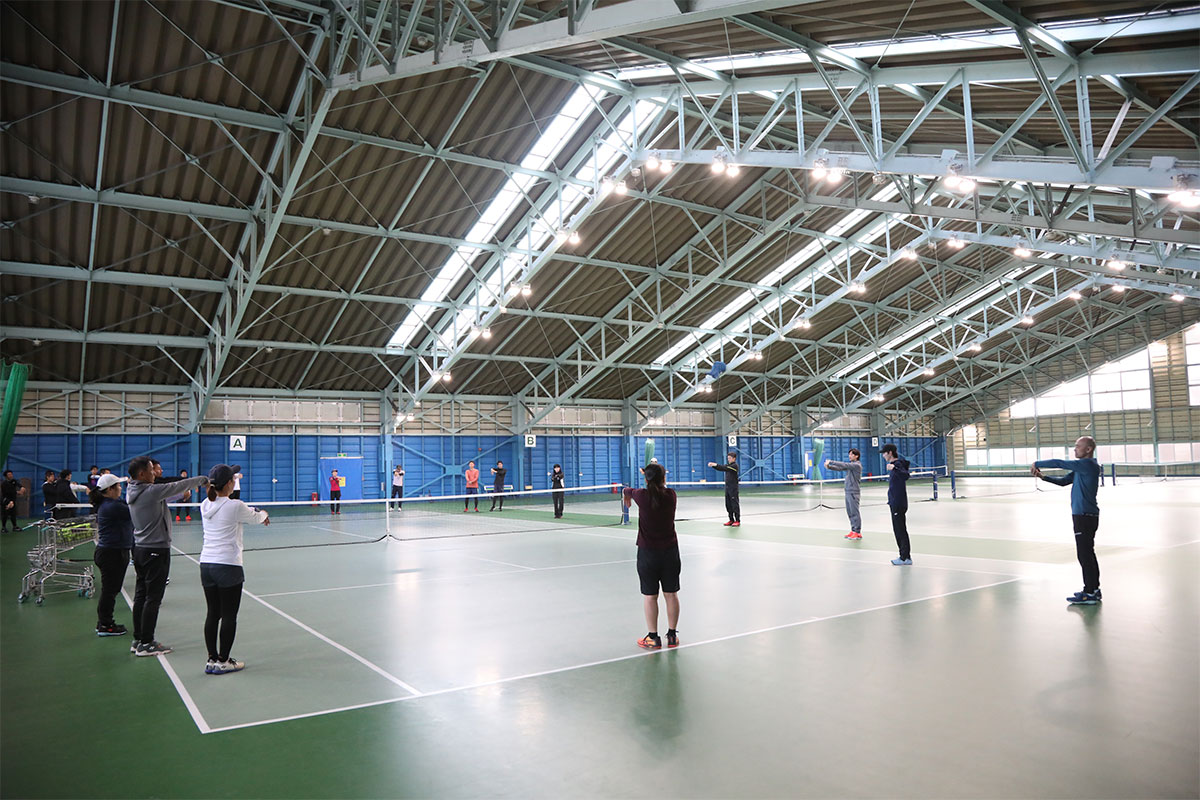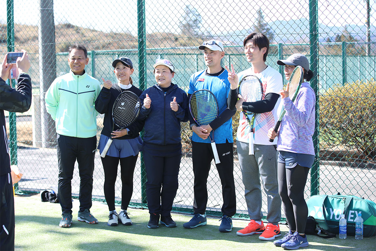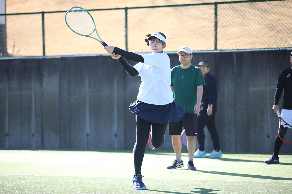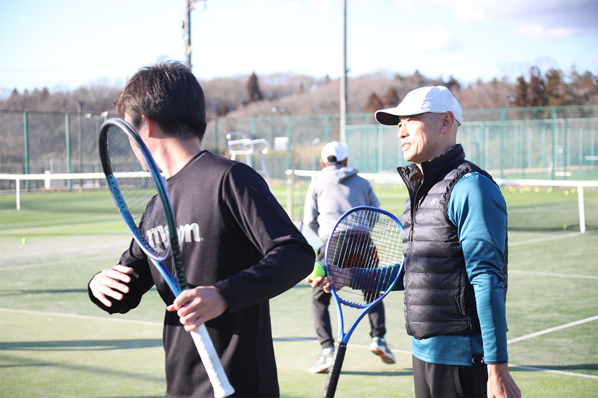岩渕プロと交流をしながら、オンコートでのレッスンからビデオ映像を使用した座学講習までテニスのスキルアップに取り組みました。