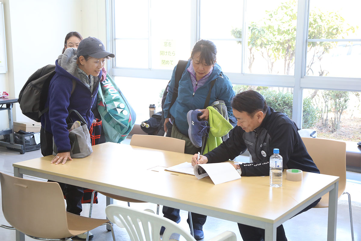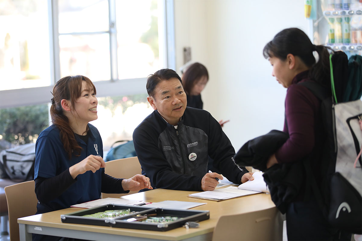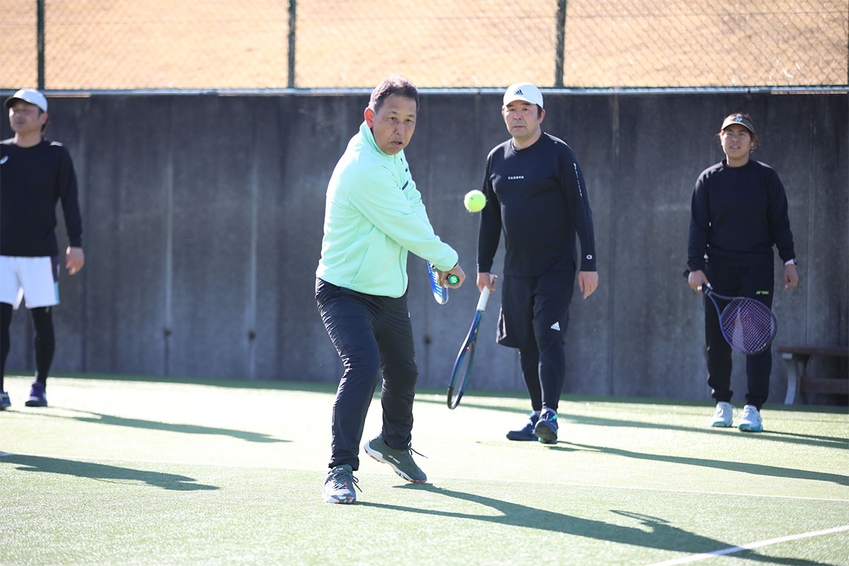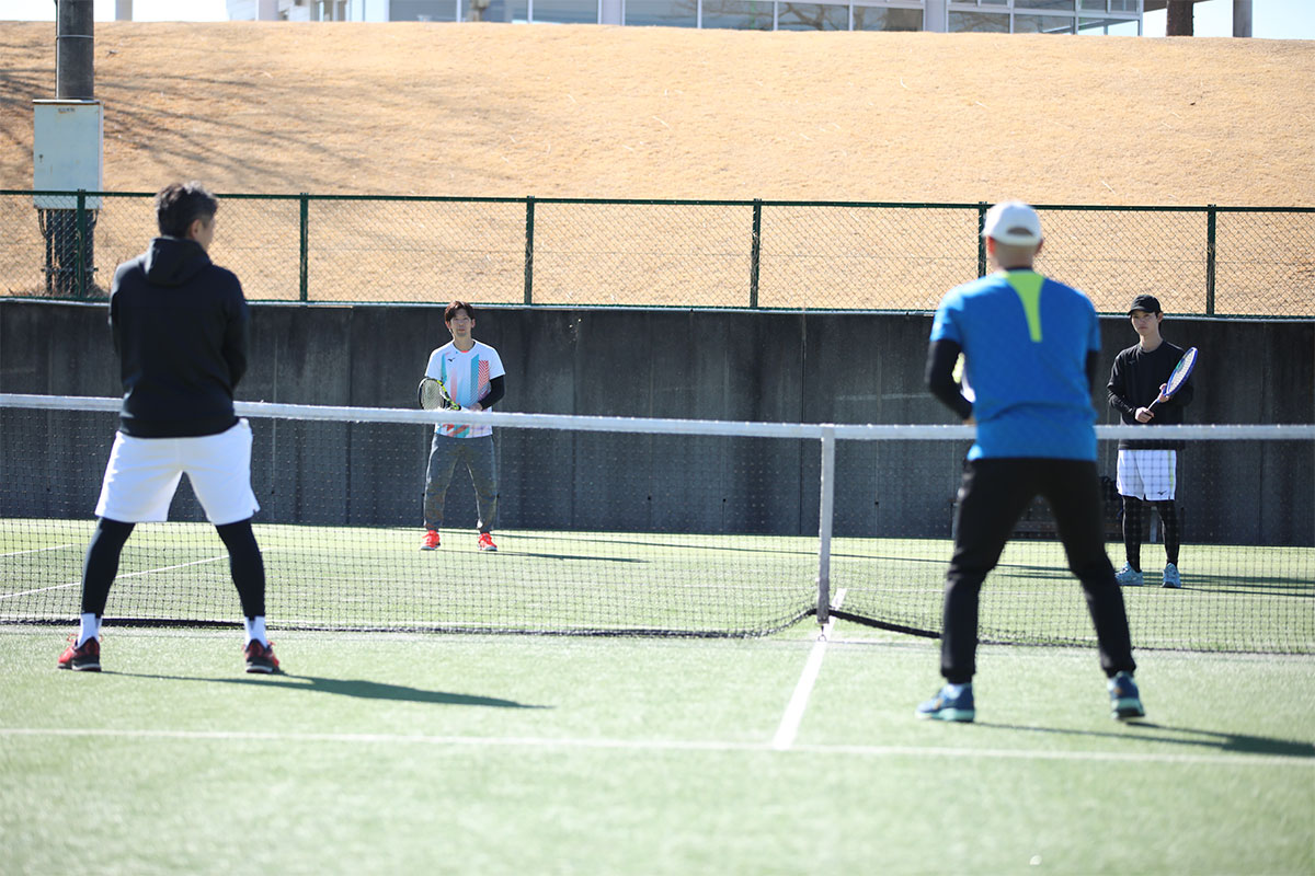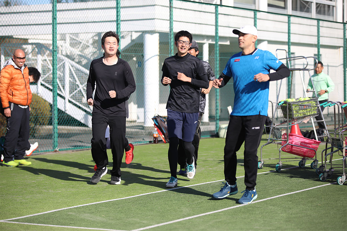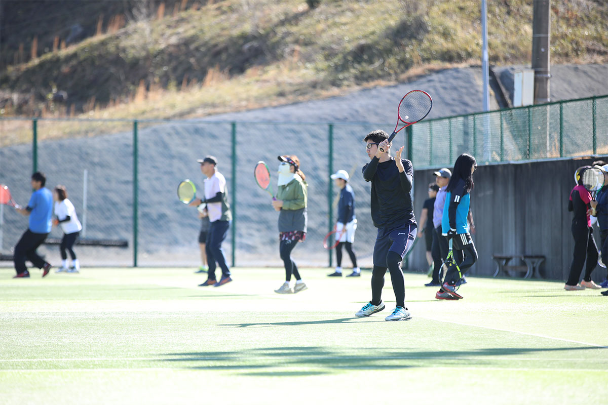 岩渕プロと交流をしながら、オンコートでのレッスンからビデオ映像を使用した座学講習までテニスのスキルアップに取り組みました。
