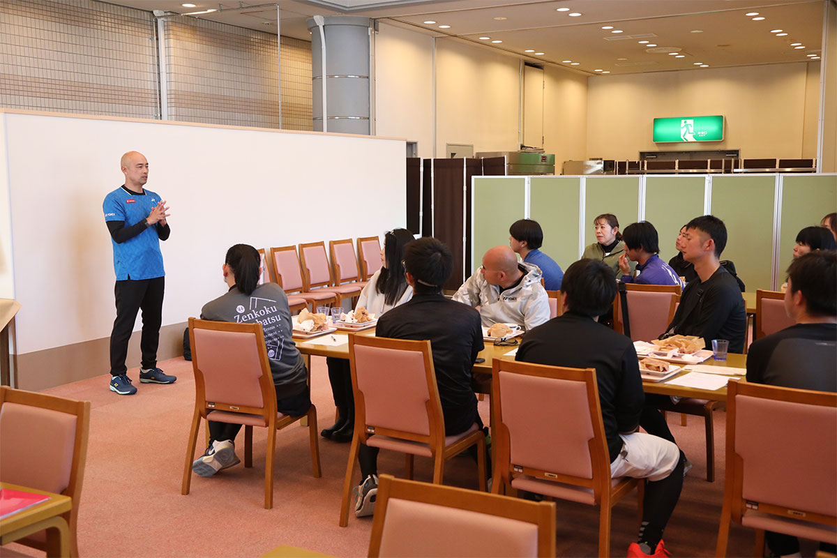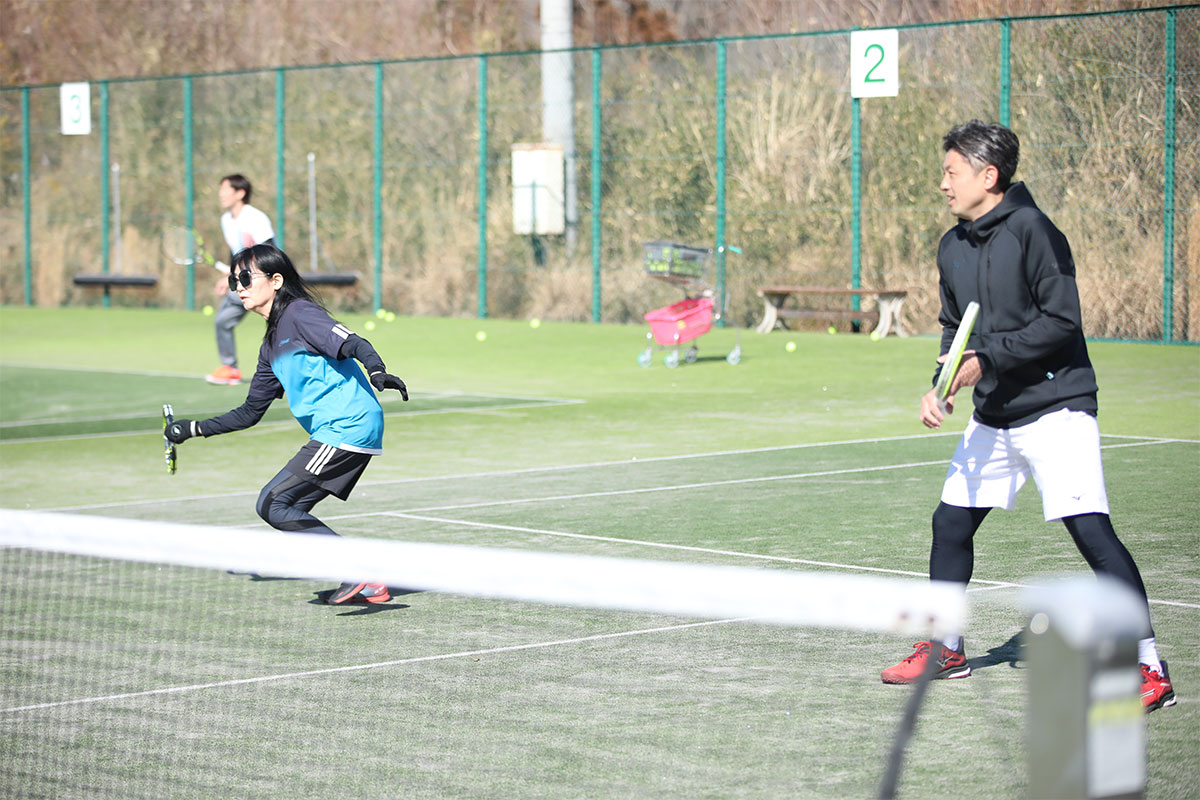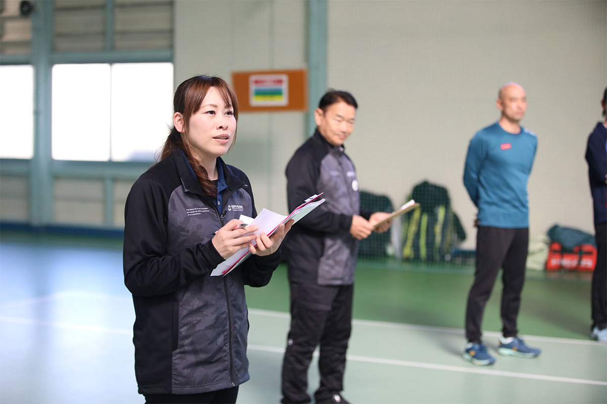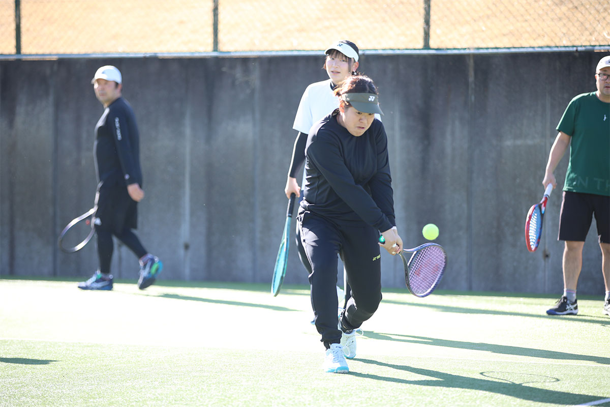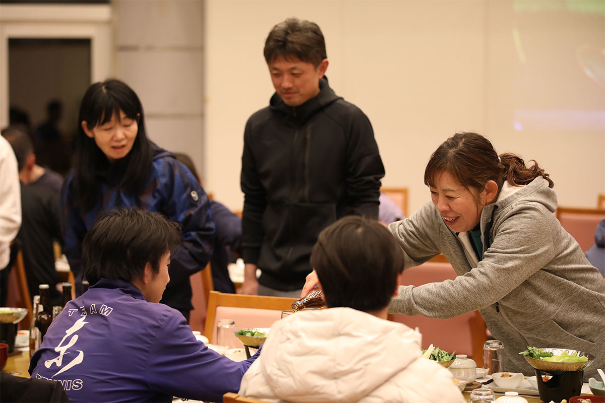 岩渕プロと交流をしながら、オンコートでのレッスンからビデオ映像を使用した座学講習までテニスのスキルアップに取り組みました。