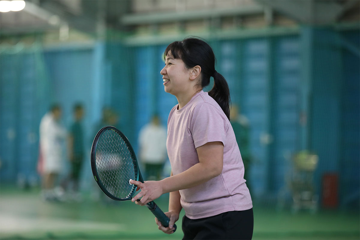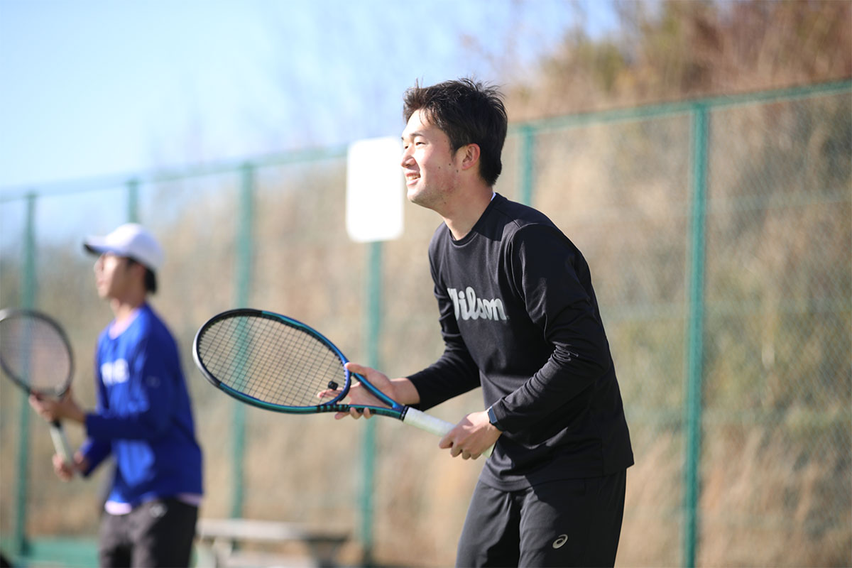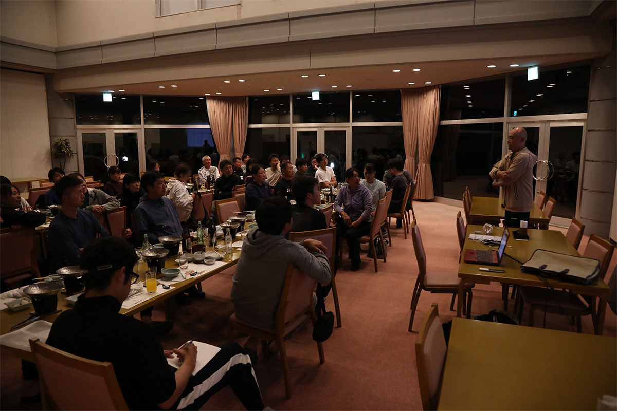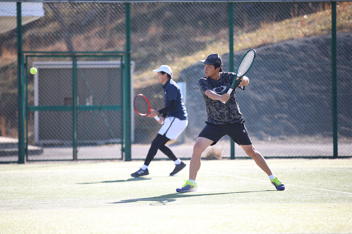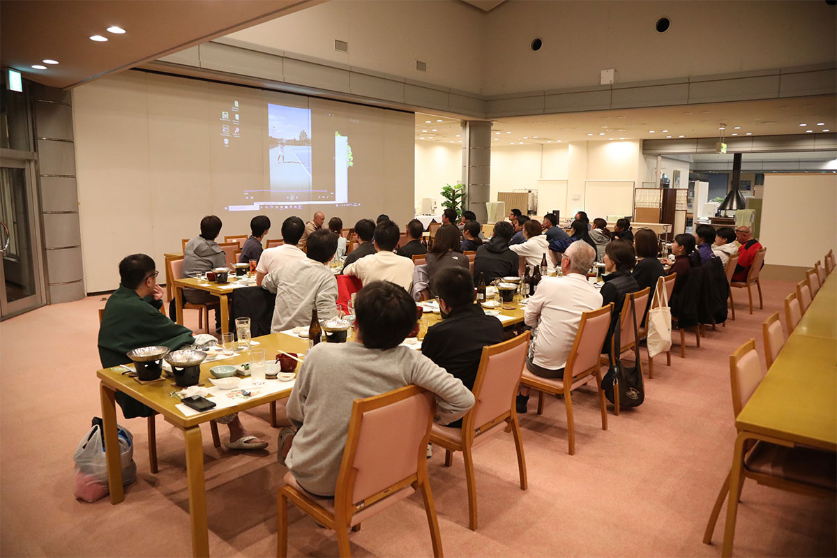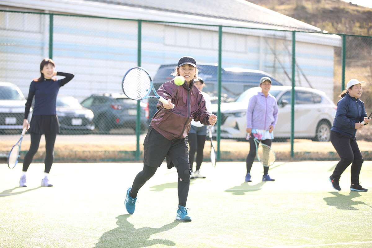 岩渕プロと交流をしながら、オンコートでのレッスンからビデオ映像を使用した座学講習までテニスのスキルアップに取り組みました。