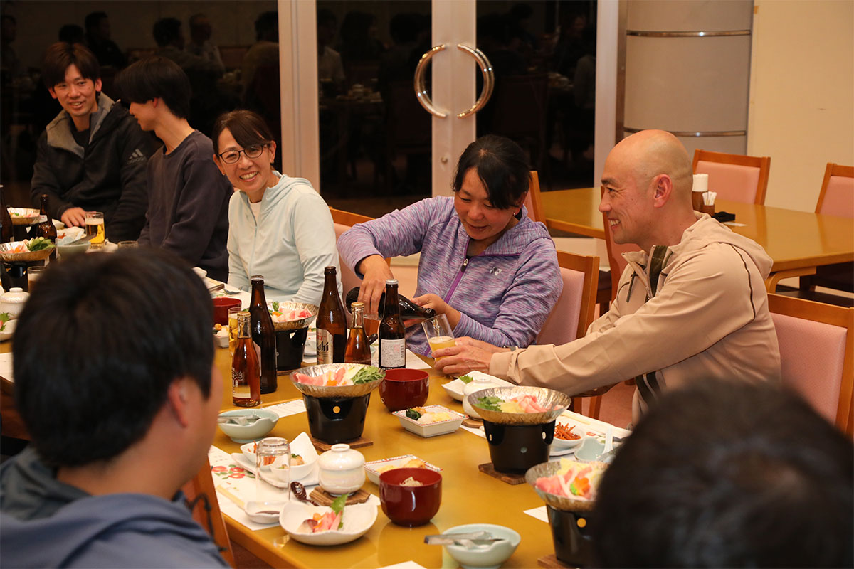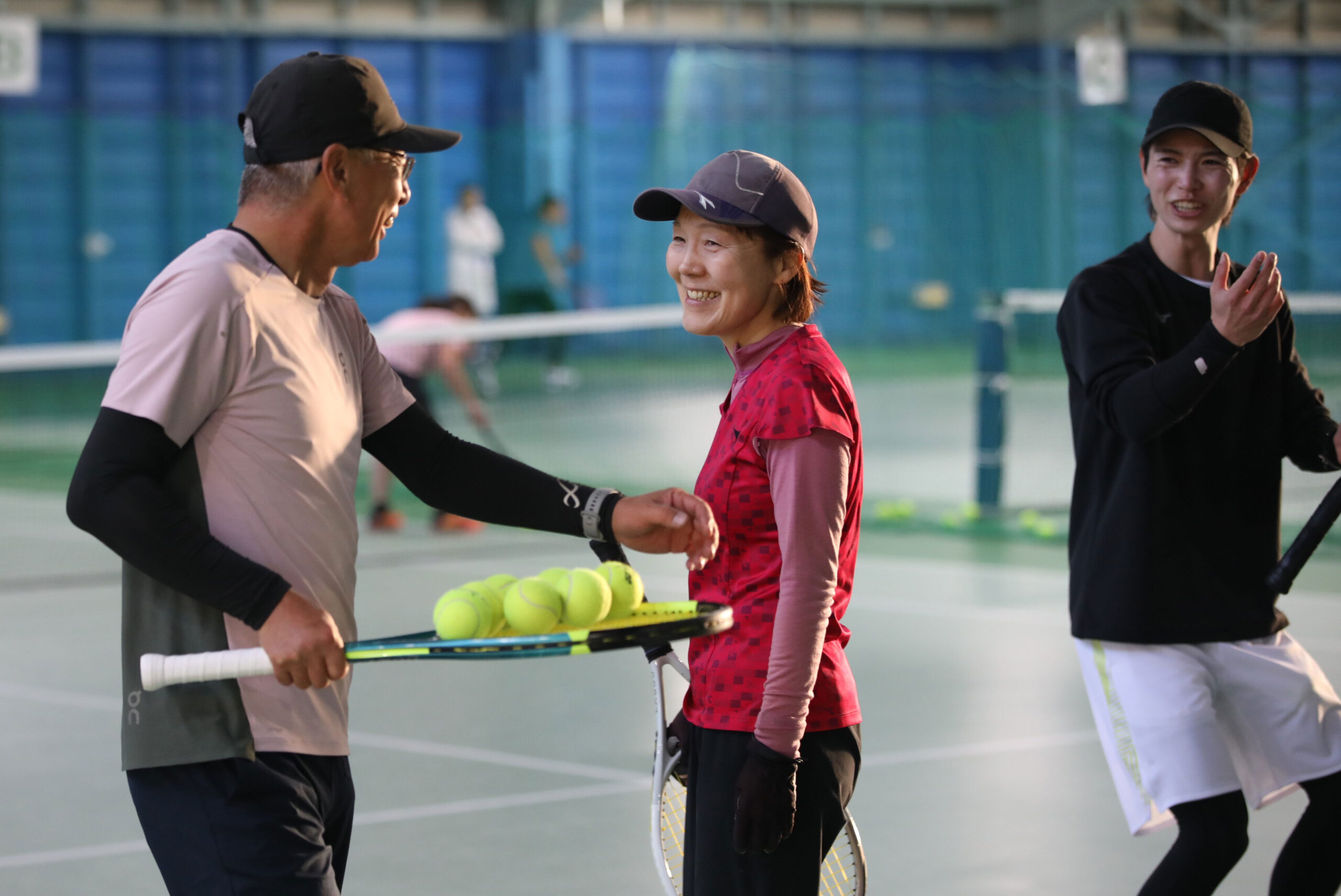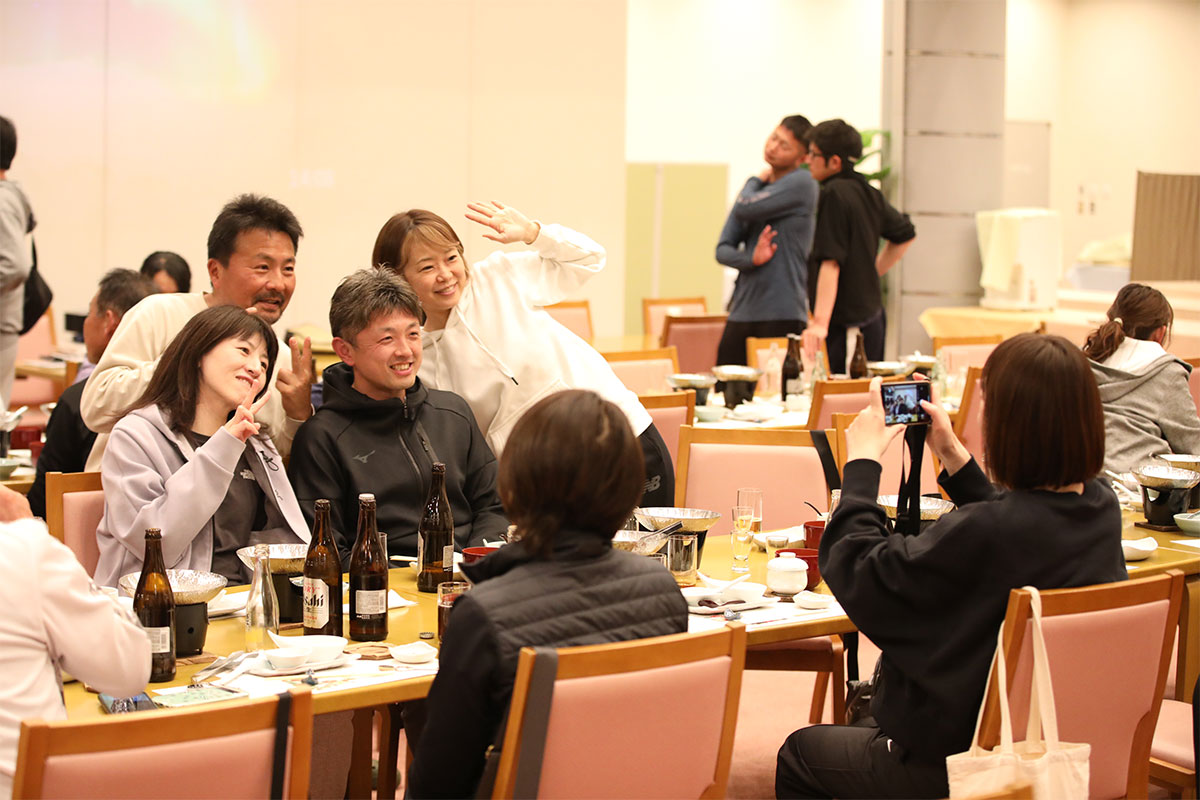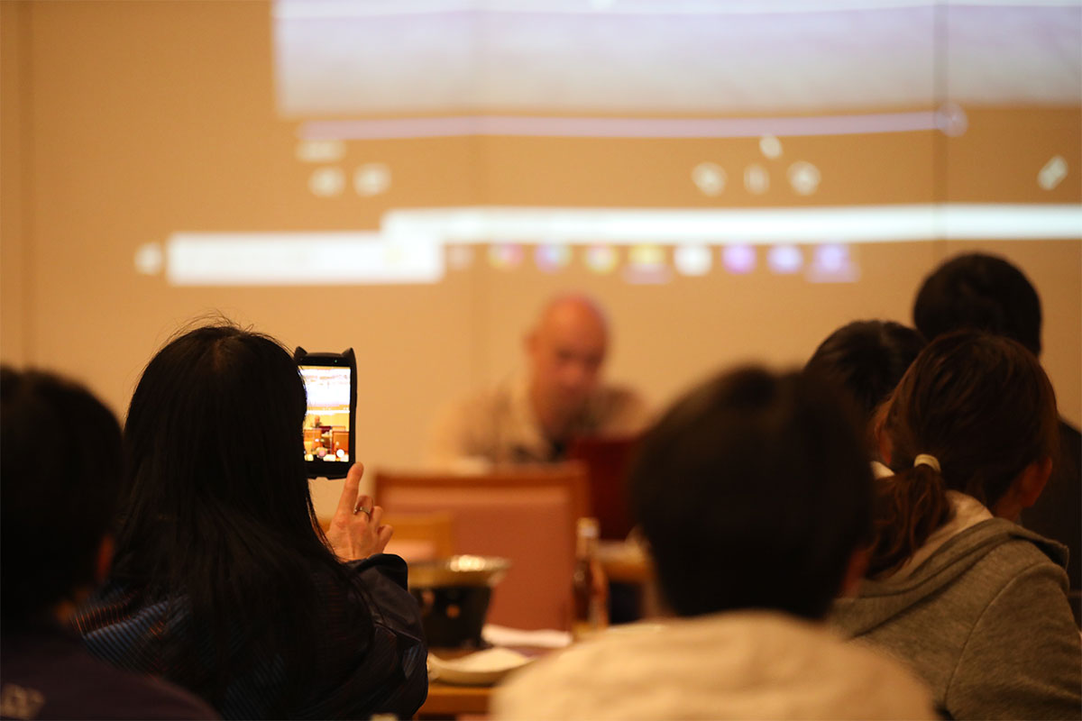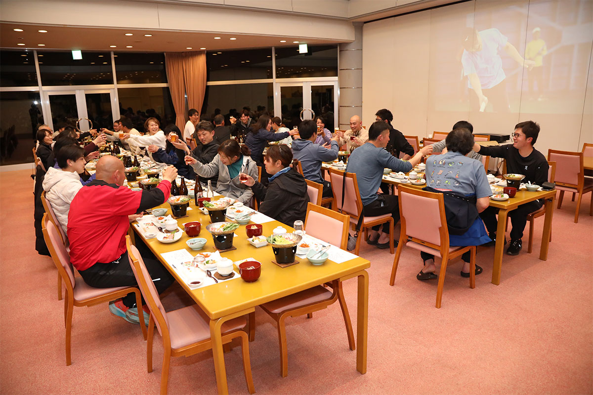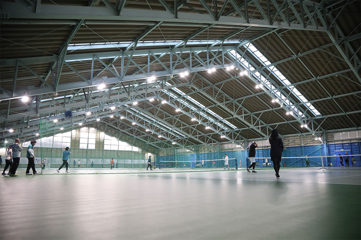 岩渕プロと交流をしながら、オンコートでのレッスンからビデオ映像を使用した座学講習までテニスのスキルアップに取り組みました。